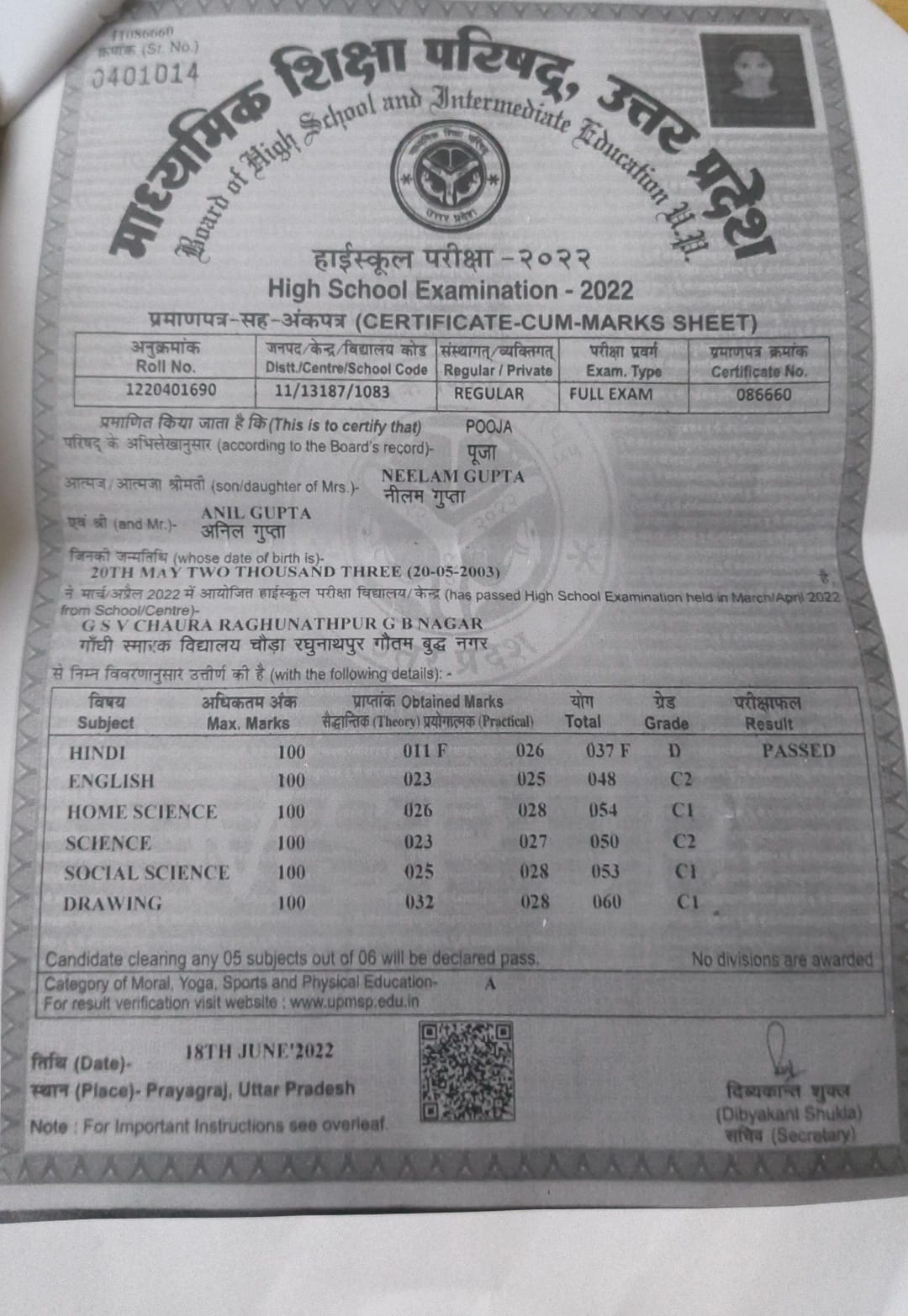 | Exam | Full Marks | Pass Marks | Marks Obtained |