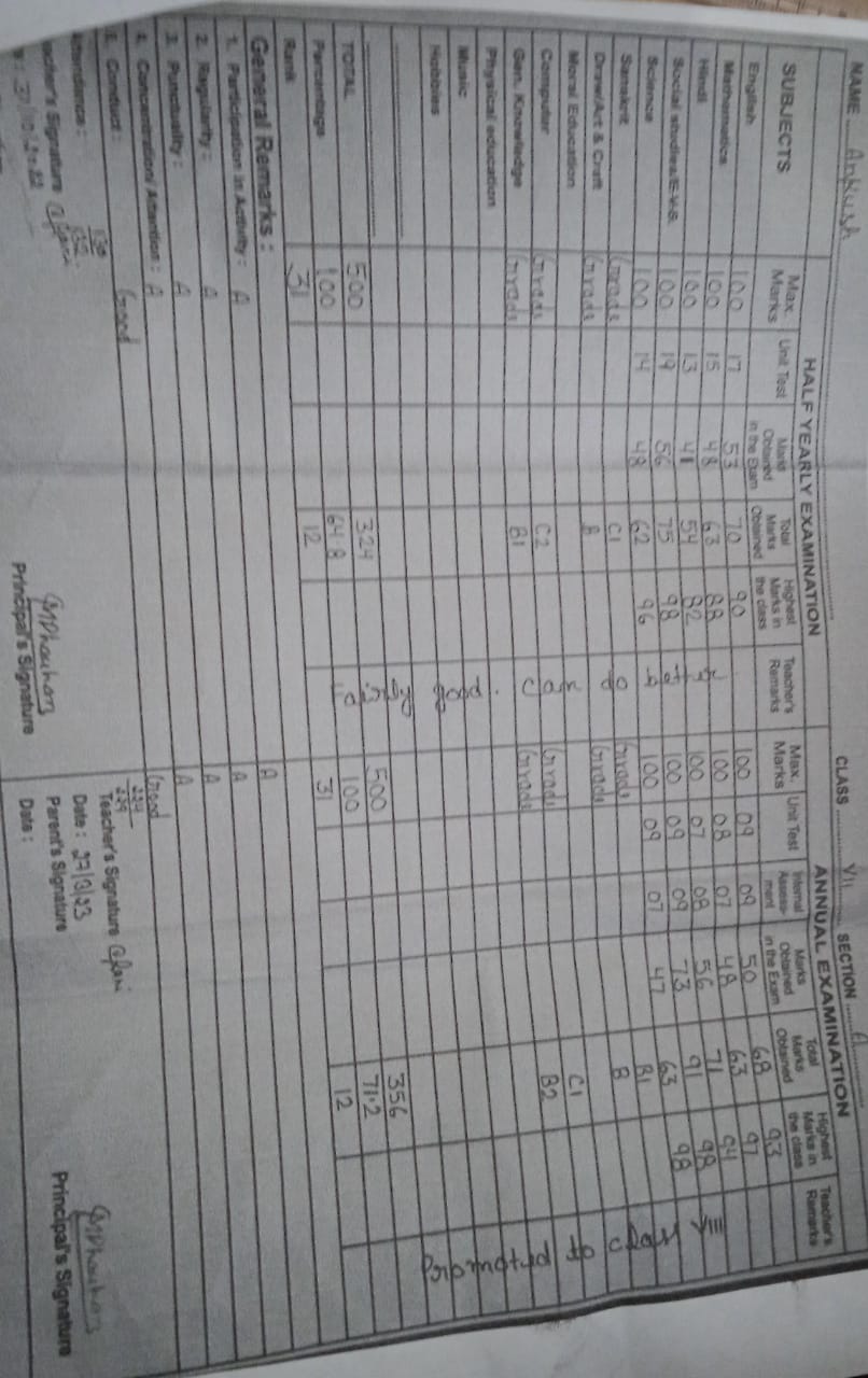 | Exam | Full Marks | Pass Marks | Marks Obtained |