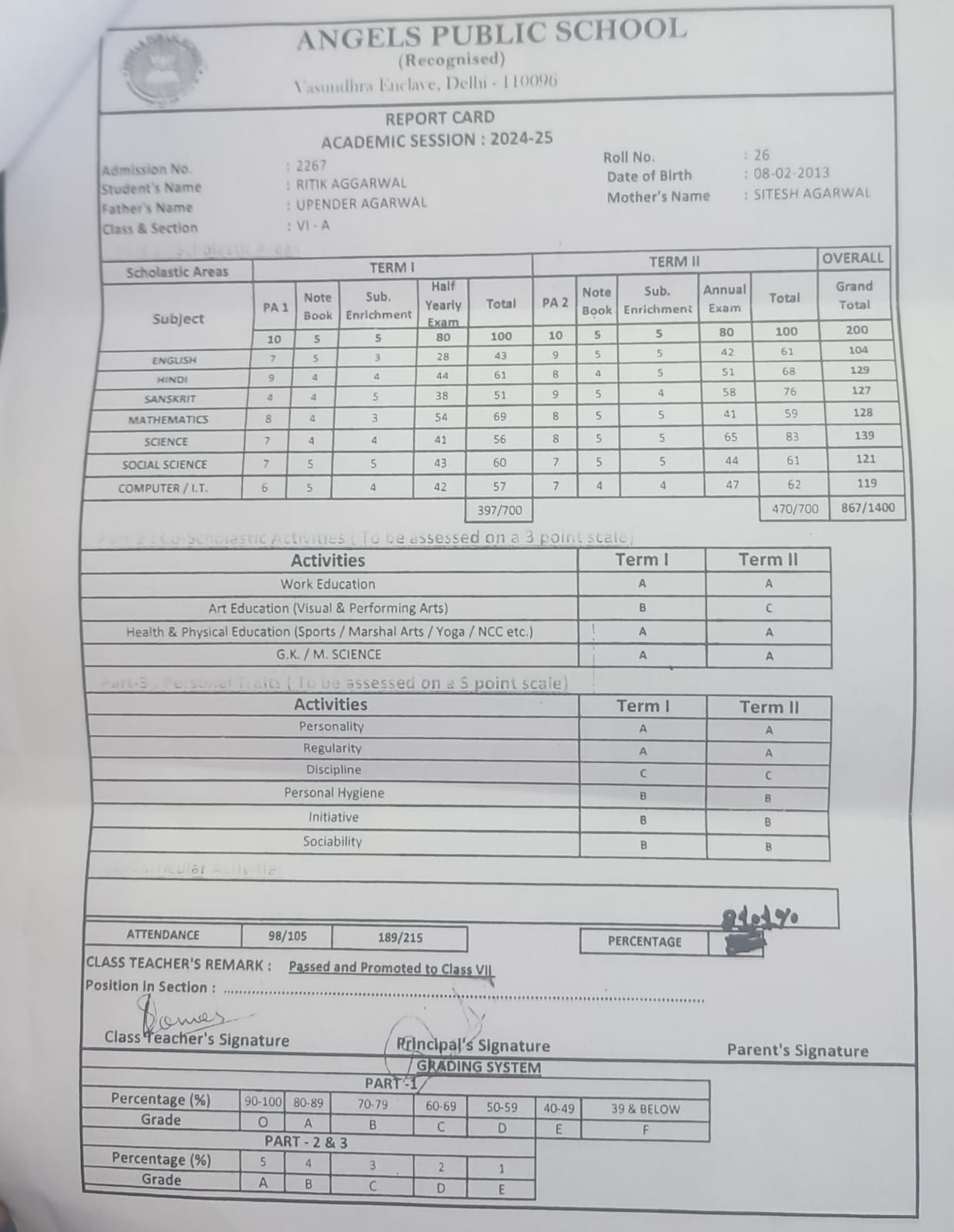 | Exam | Full Marks | Pass Marks | Marks Obtained |