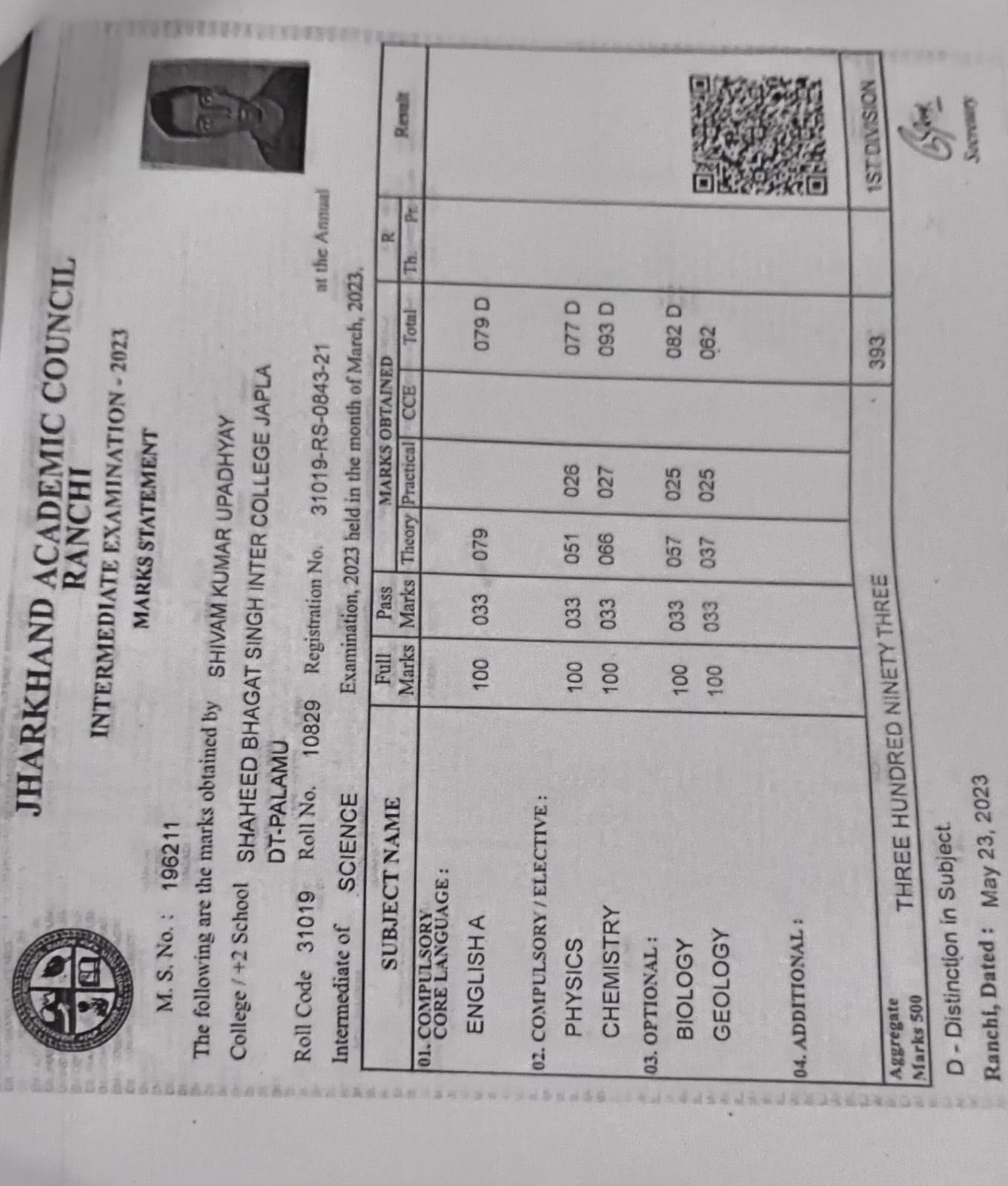 | Exam | Full Marks | Pass Marks | Marks Obtained |