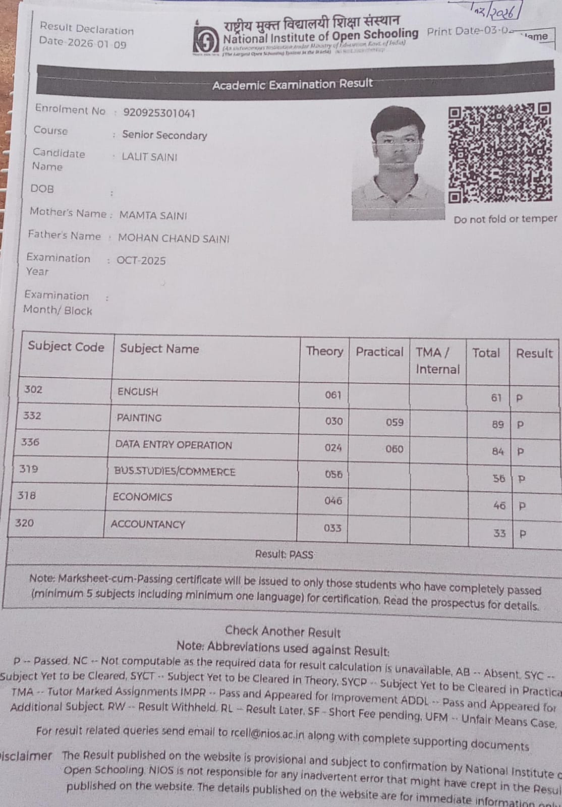 | Exam | Full Marks | Pass Marks | Marks Obtained |