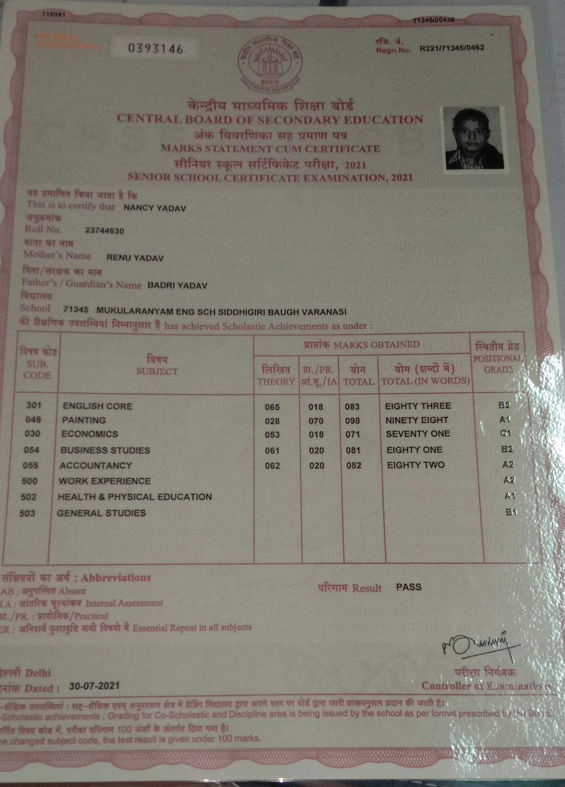 | Exam | Full Marks | Pass Marks | Marks Obtained |