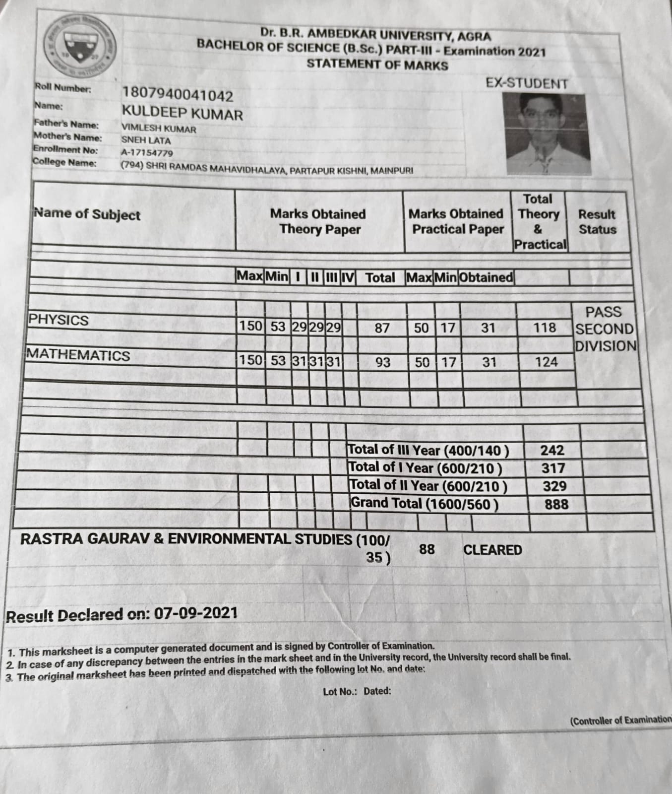 | Exam | Full Marks | Pass Marks | Marks Obtained |
