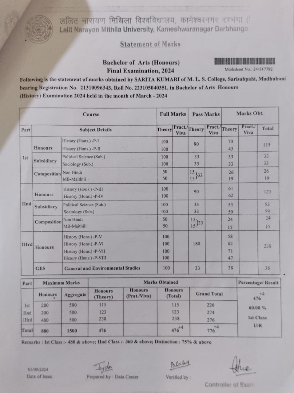 | Exam | Full Marks | Pass Marks | Marks Obtained |