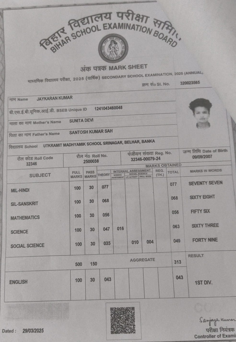 | Exam | Full Marks | Pass Marks | Marks Obtained |
