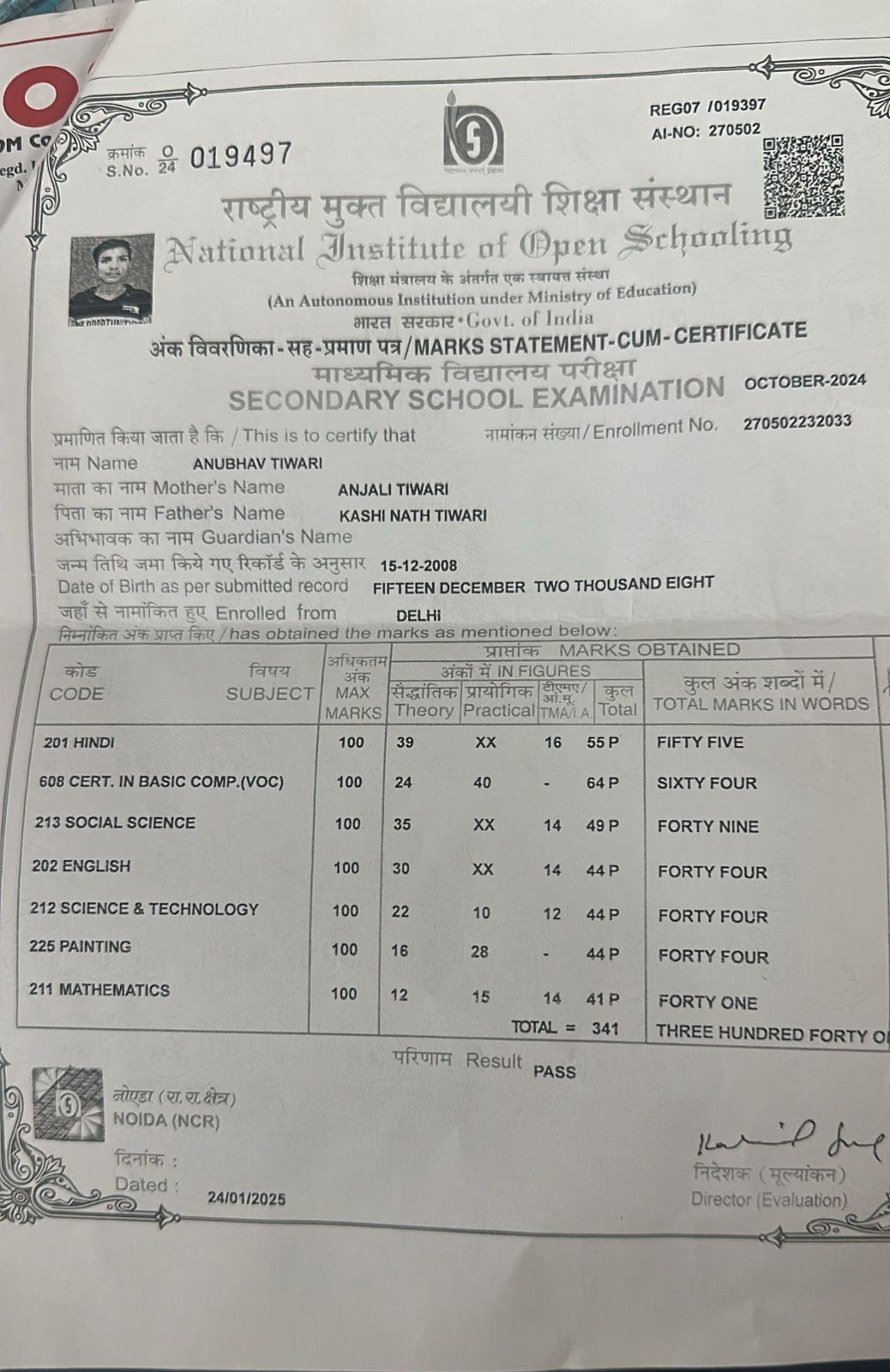 | Exam | Full Marks | Pass Marks | Marks Obtained |