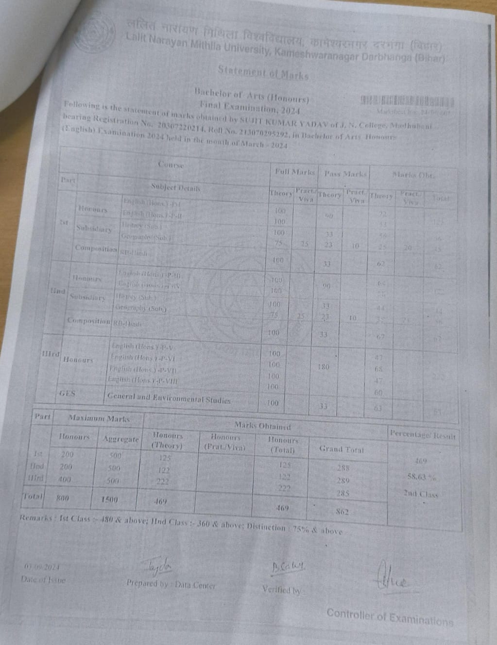 | Exam | Full Marks | Pass Marks | Marks Obtained |