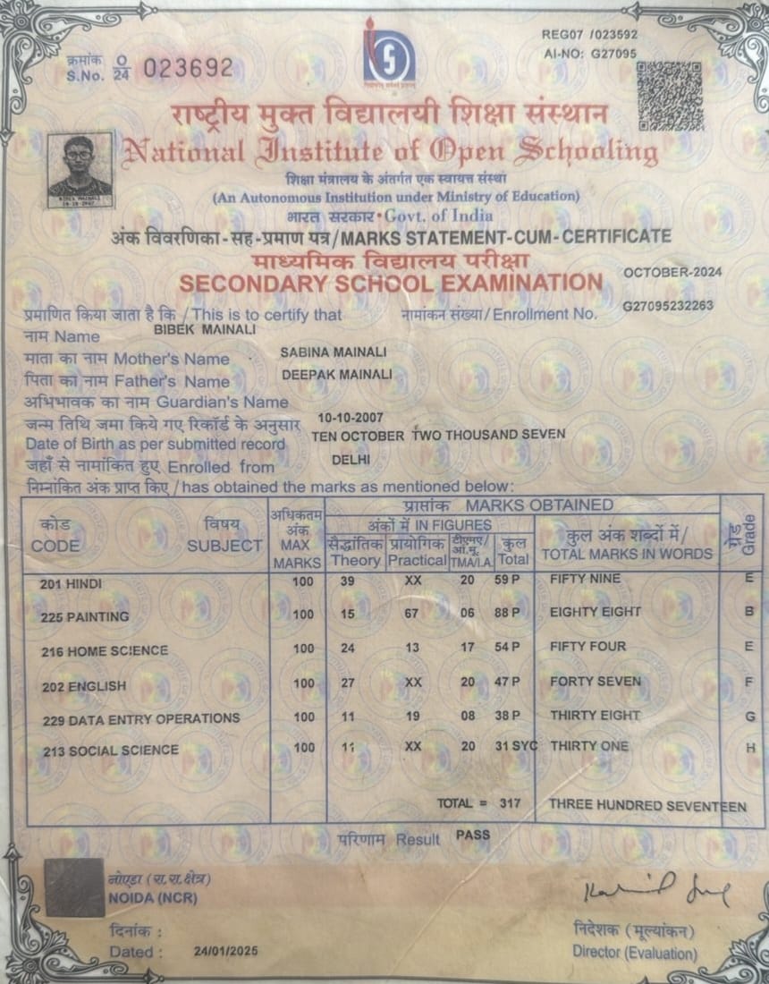 | Exam | Full Marks | Pass Marks | Marks Obtained |