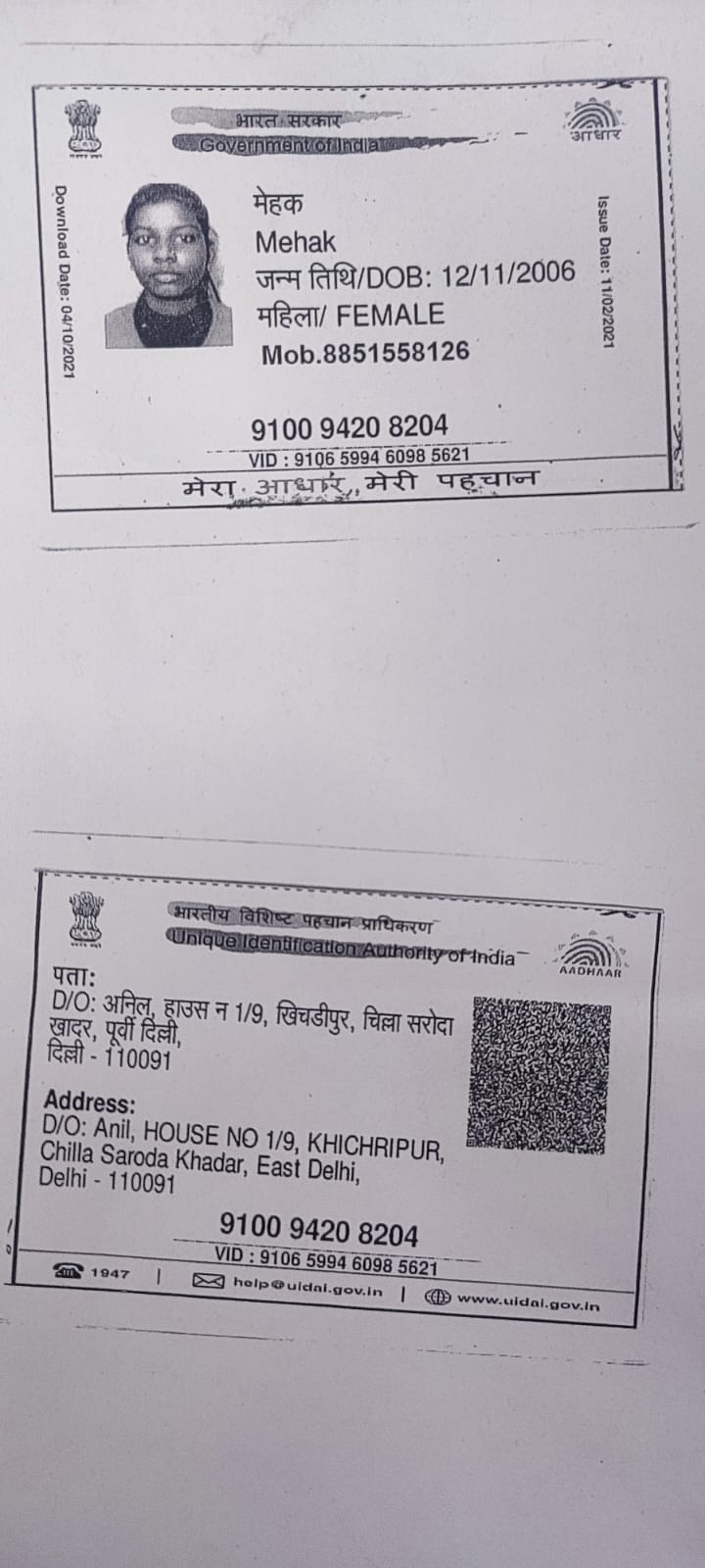 | : | 12/469, Kalyan Puri, Delhi-91, East Delhi | |