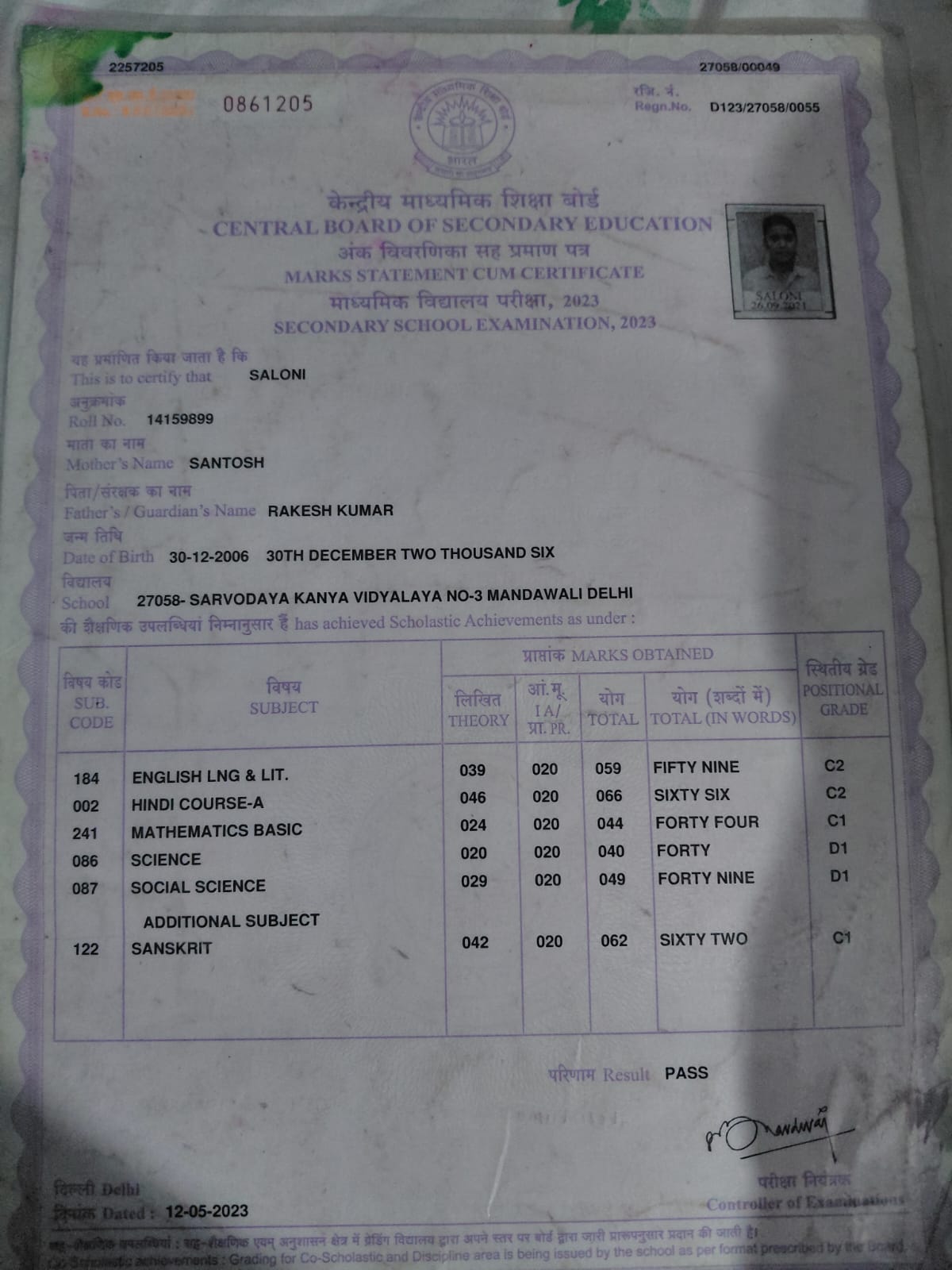 | Exam | Full Marks | Pass Marks | Marks Obtained |