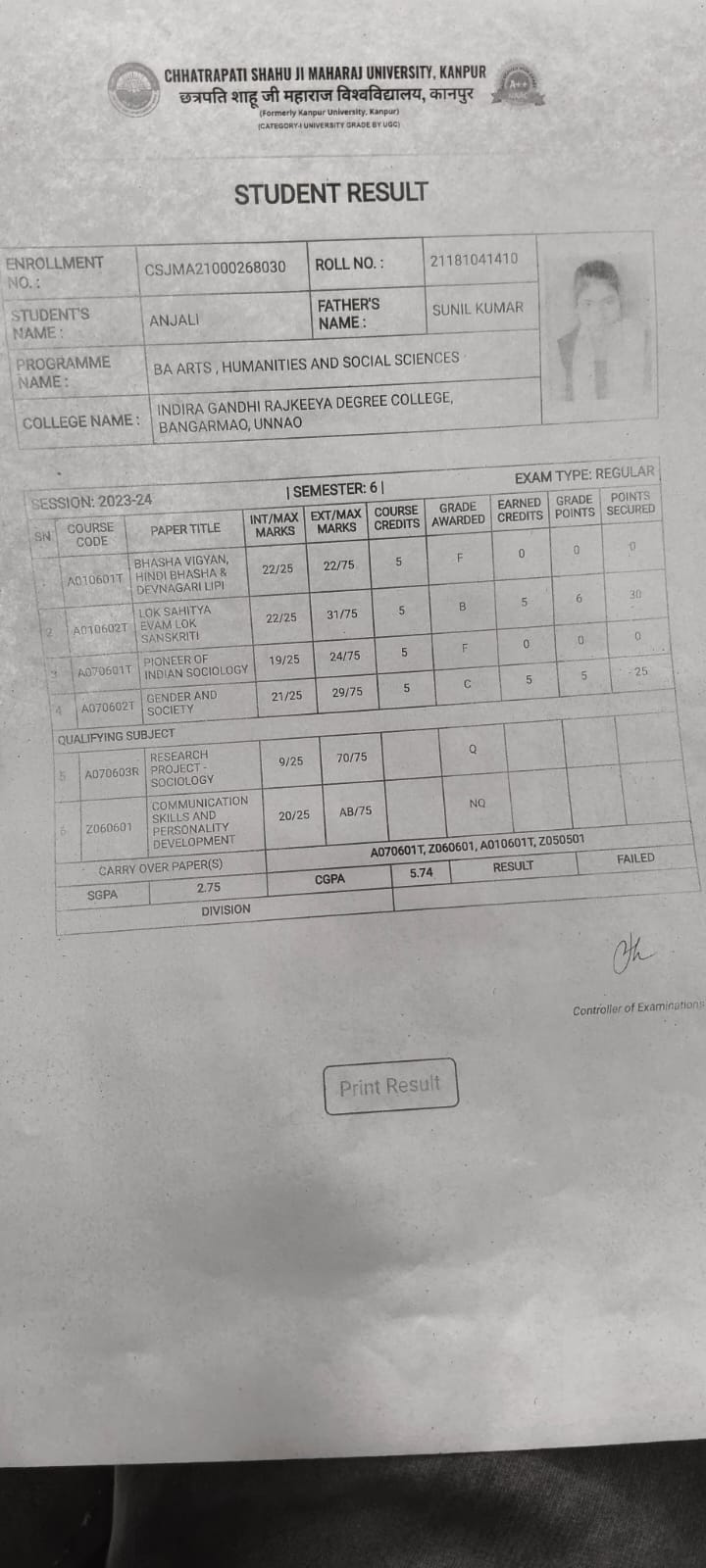 | Exam | Full Marks | Pass Marks | Marks Obtained |