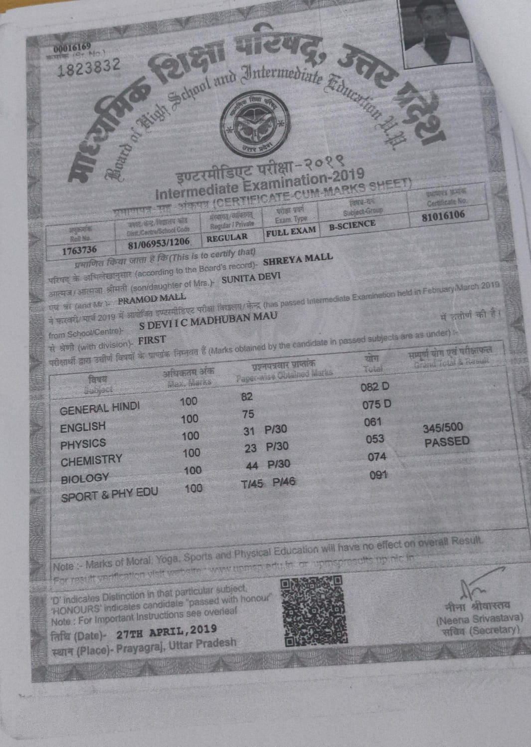 | Exam | Full Marks | Pass Marks | Marks Obtained |