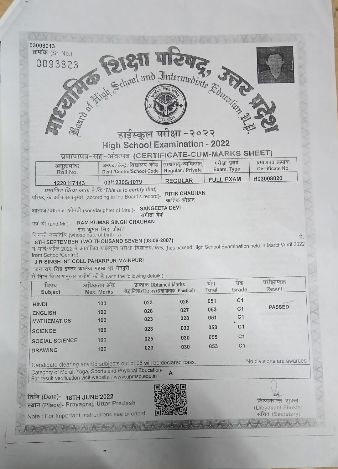 | Exam | Full Marks | Pass Marks | Marks Obtained |