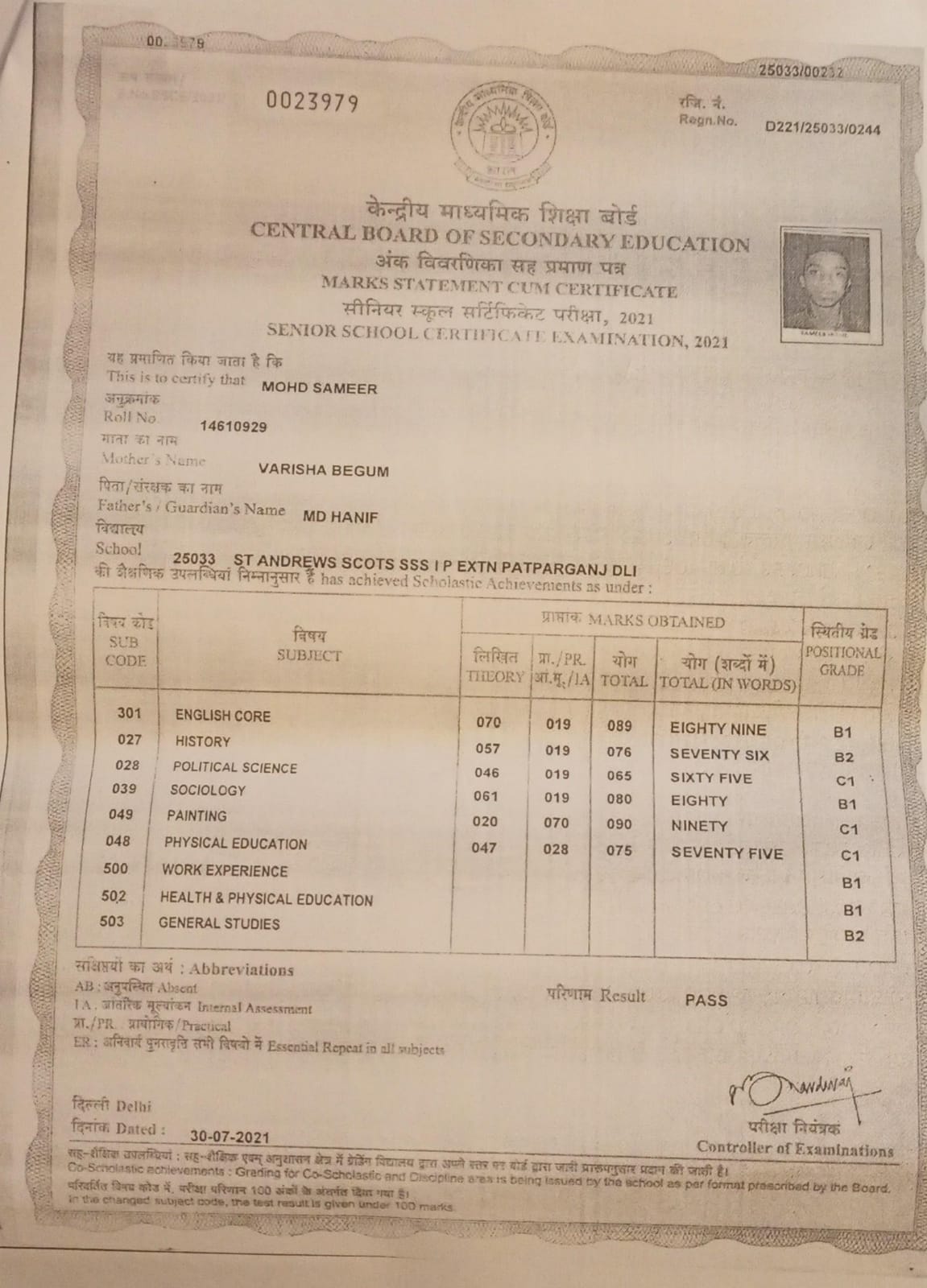| Exam | Full Marks | Pass Marks | Marks Obtained |
