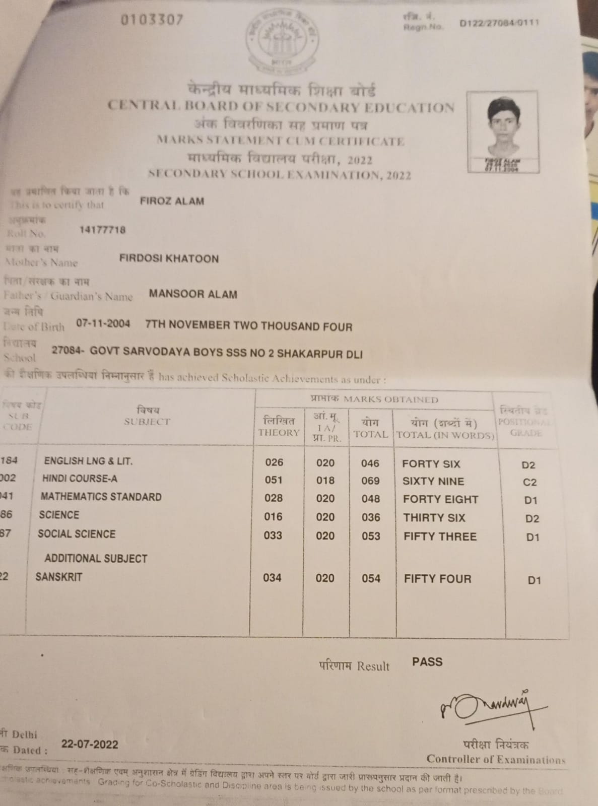 | Exam | Full Marks | Pass Marks | Marks Obtained |