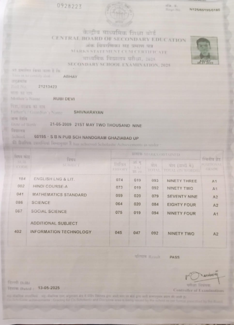 | Exam | Full Marks | Pass Marks | Marks Obtained |