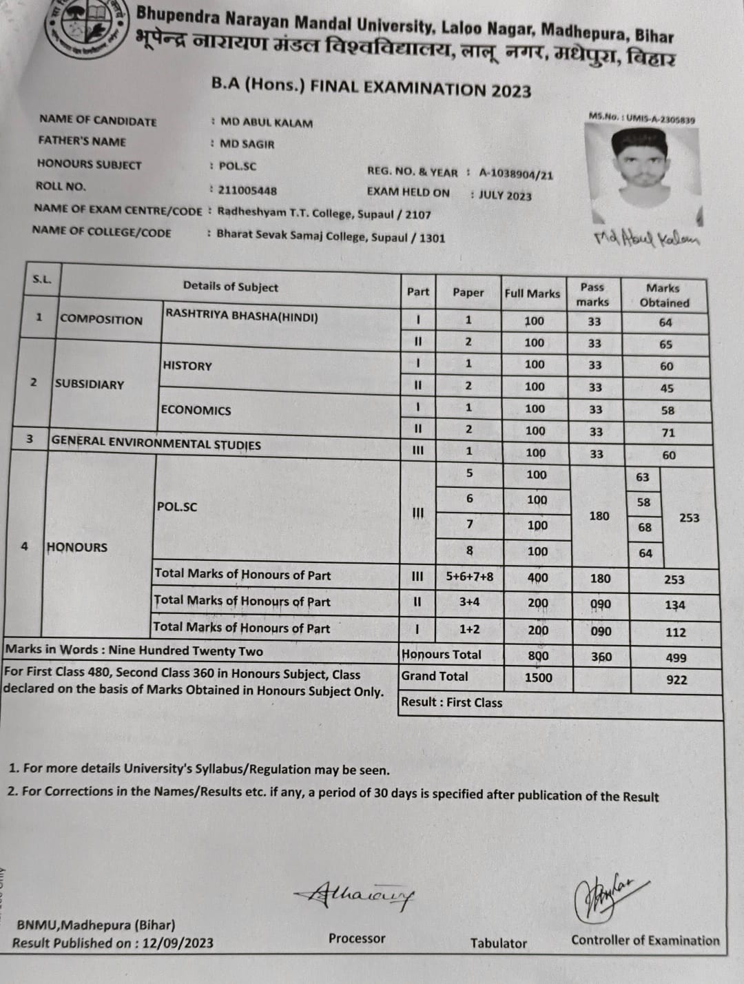 | Exam | Full Marks | Pass Marks | Marks Obtained |