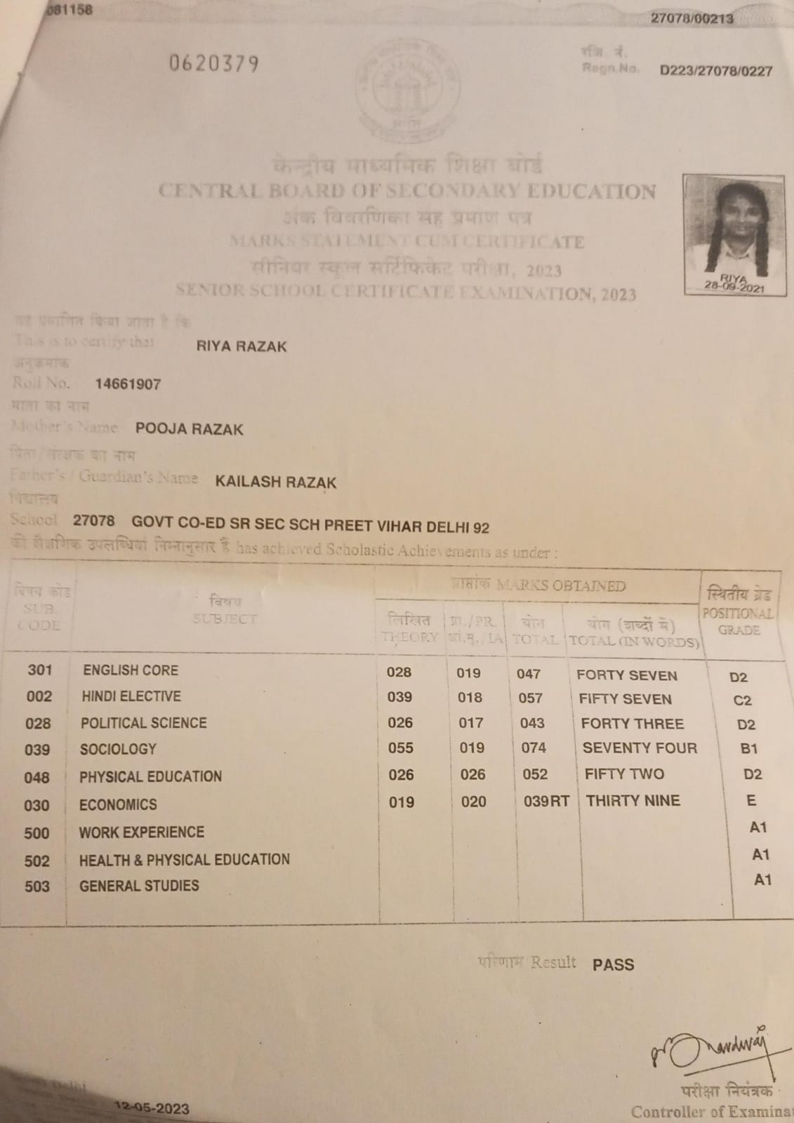 | Exam | Full Marks | Pass Marks | Marks Obtained |