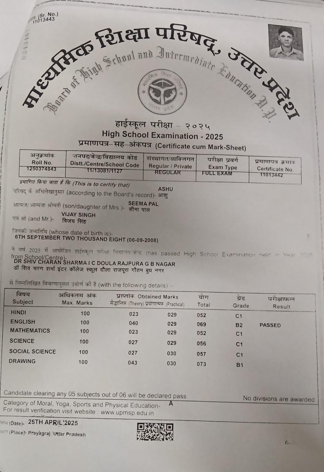 | Exam | Full Marks | Pass Marks | Marks Obtained |