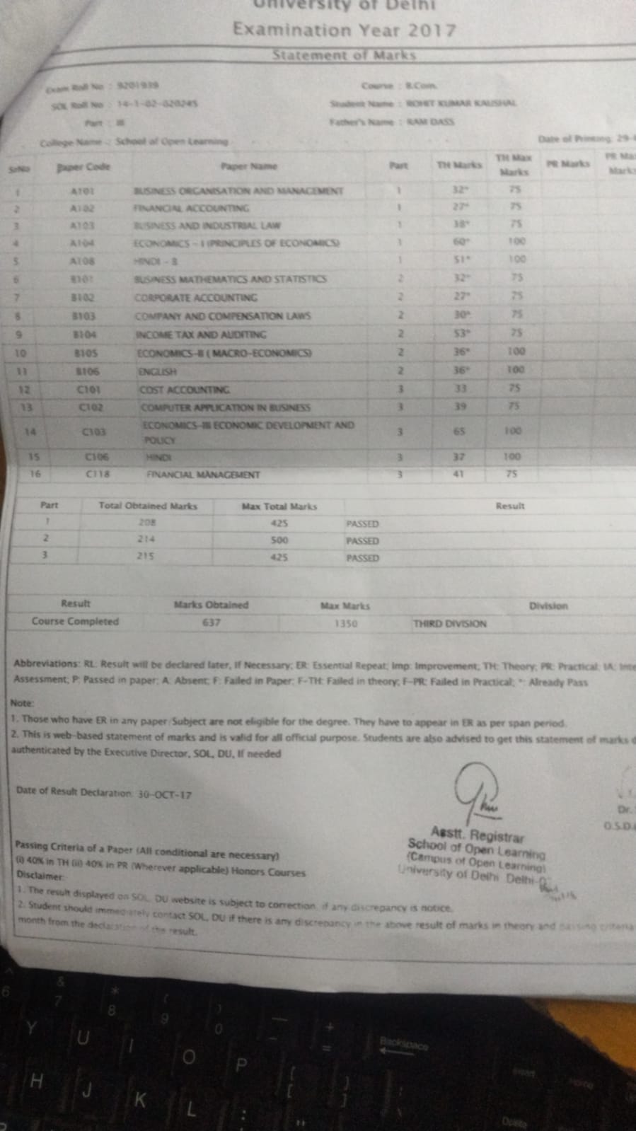 | Exam | Full Marks | Pass Marks | Marks Obtained |