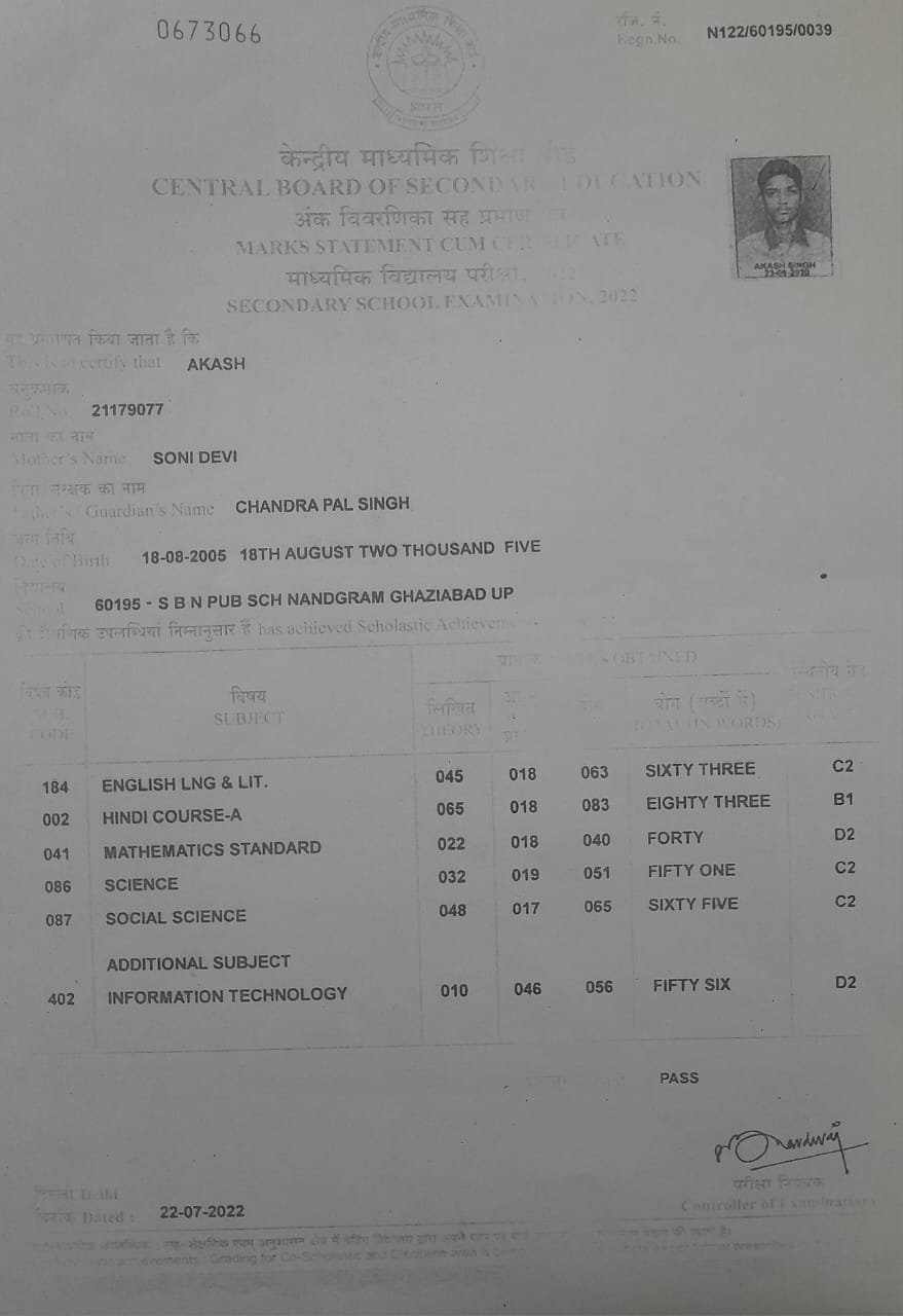 | Exam | Full Marks | Pass Marks | Marks Obtained |
