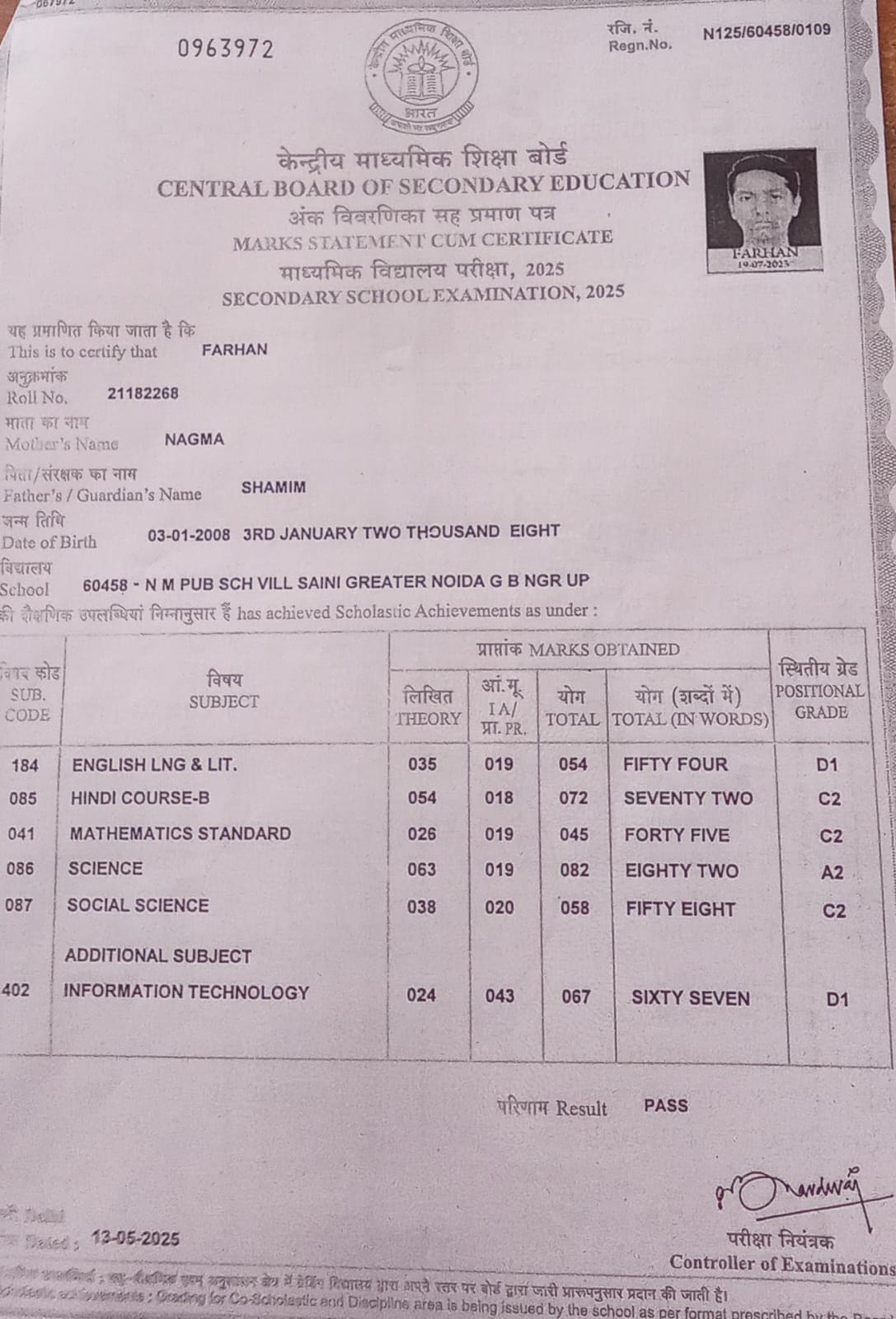 | Exam | Full Marks | Pass Marks | Marks Obtained |