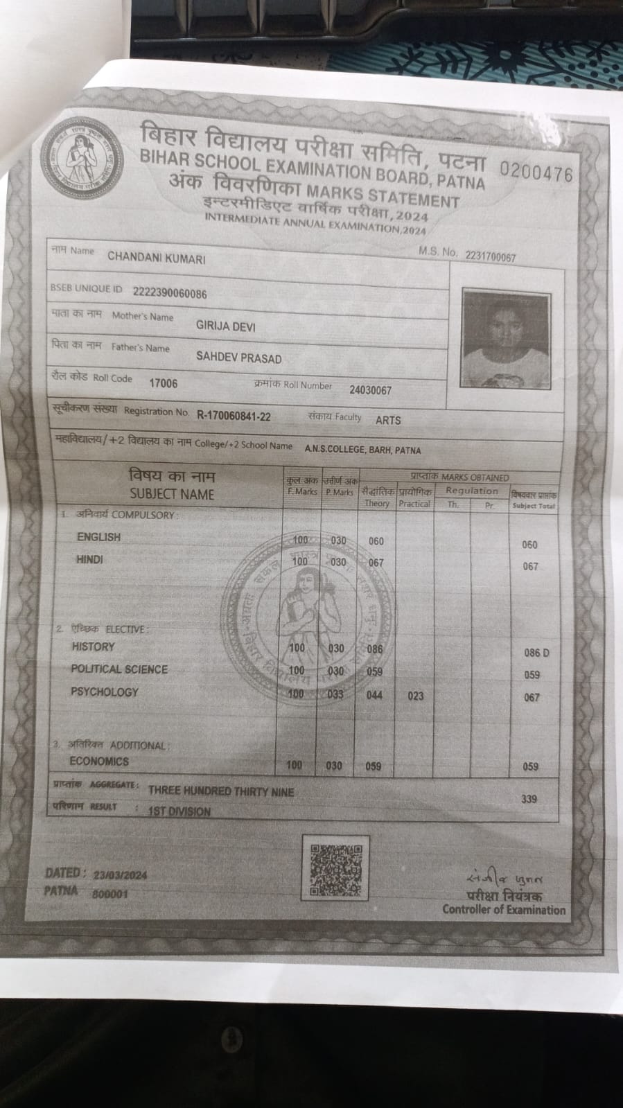 | Exam | Full Marks | Pass Marks | Marks Obtained |
