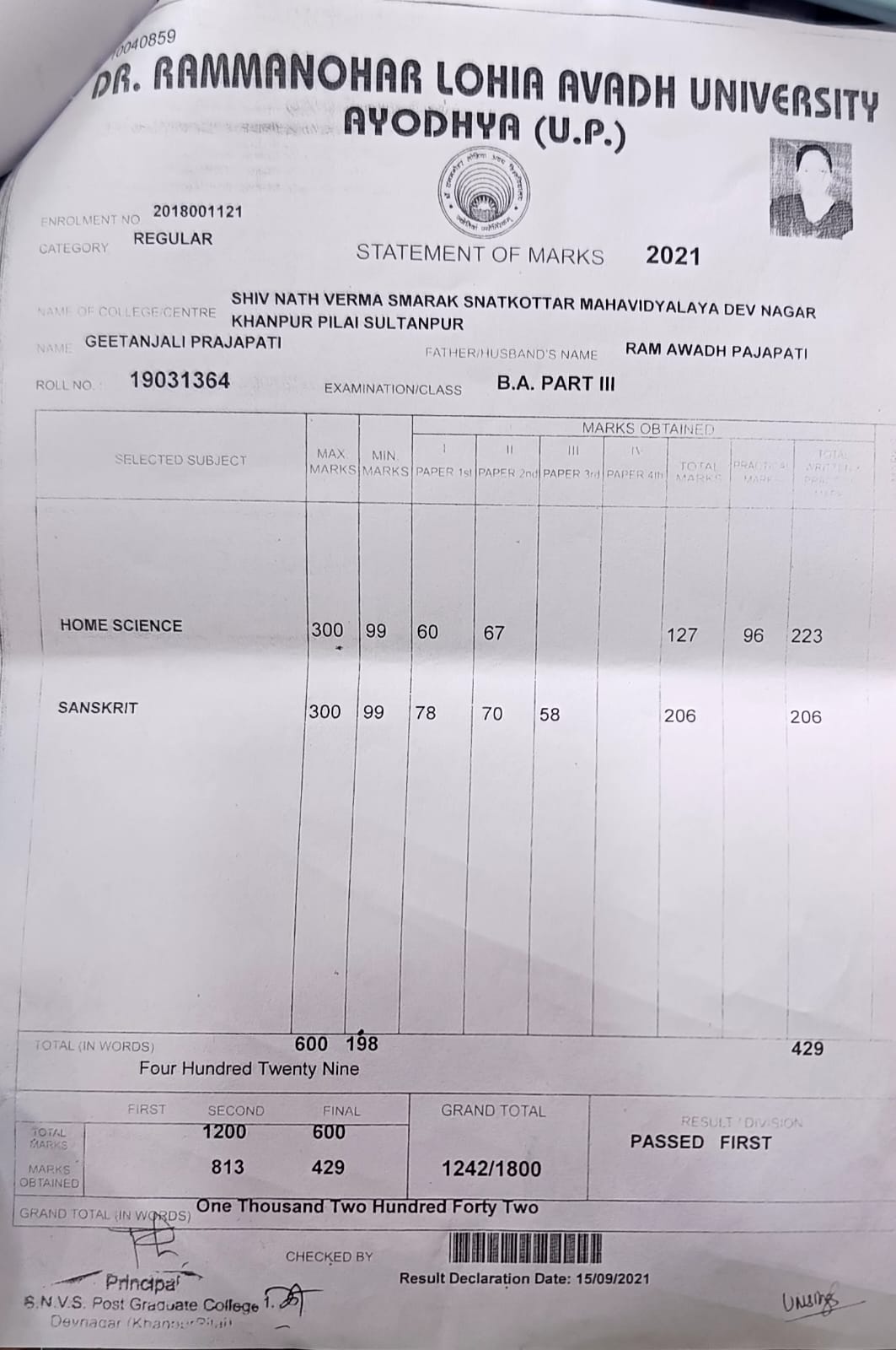 | : | Ram Awadh | |
