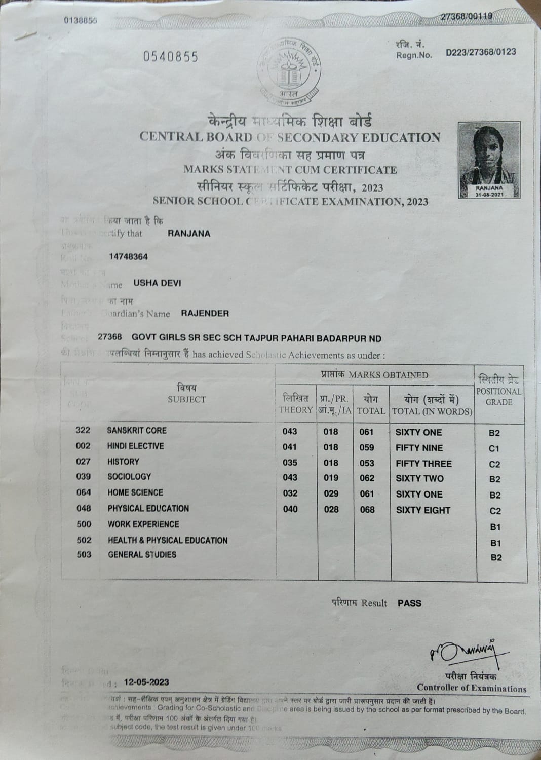 | Exam | Full Marks | Pass Marks | Marks Obtained |
