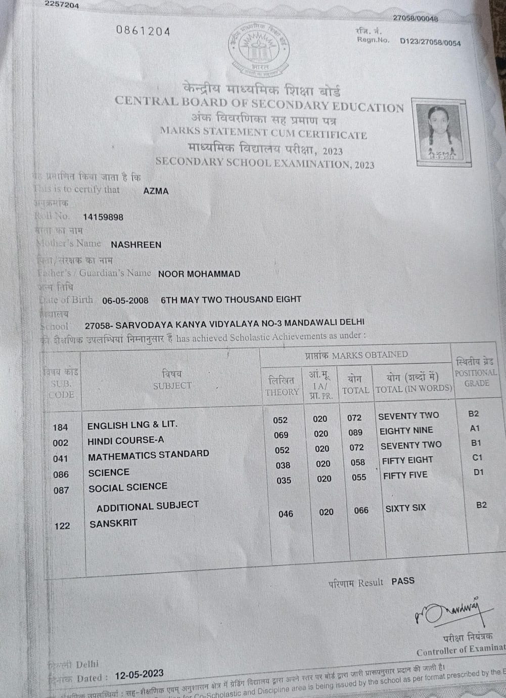 | Exam | Full Marks | Pass Marks | Marks Obtained |
