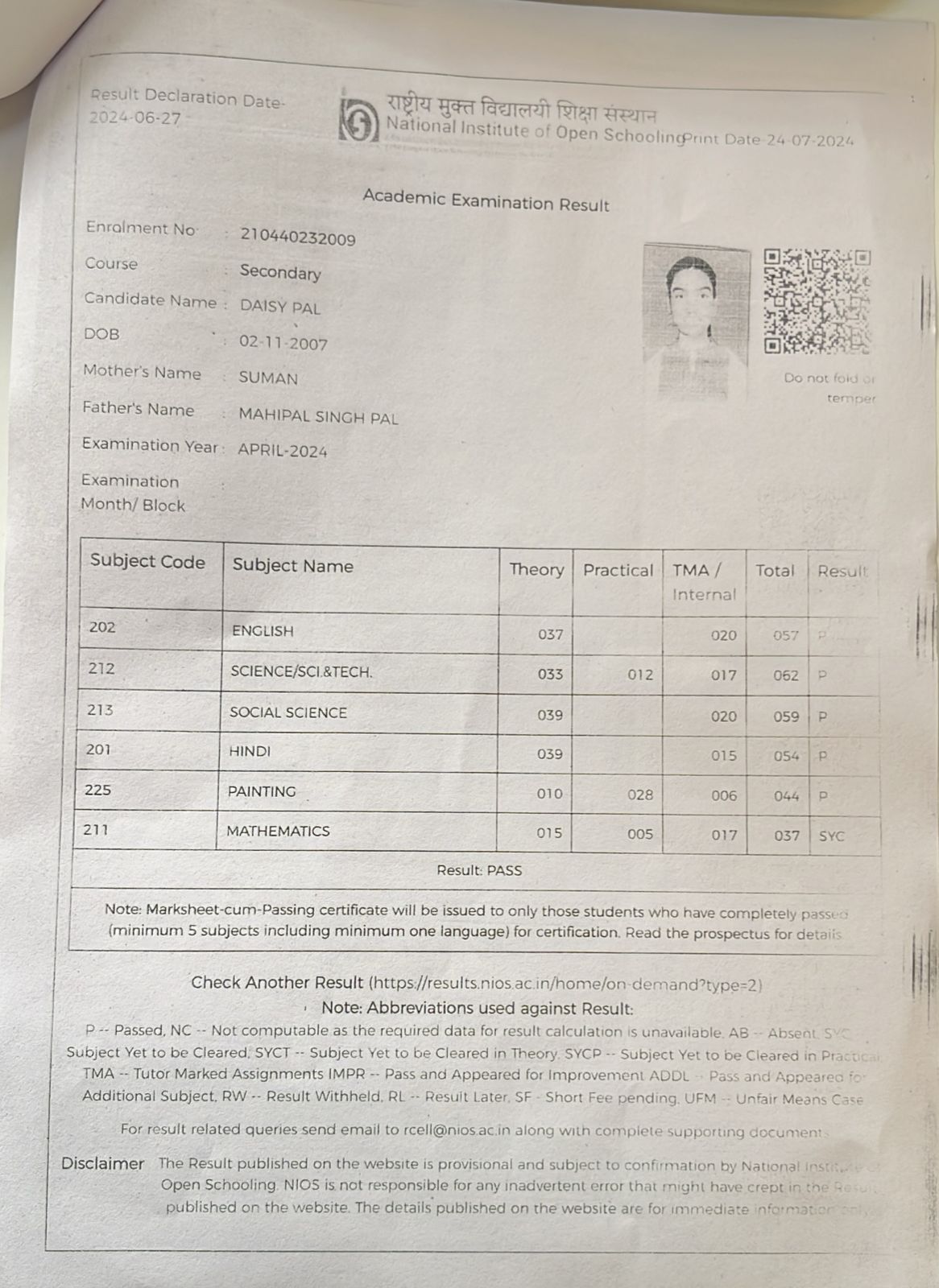 | Exam | Full Marks | Pass Marks | Marks Obtained |