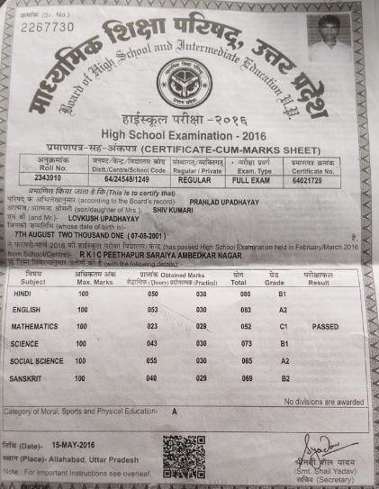 | Exam | Full Marks | Pass Marks | Marks Obtained |