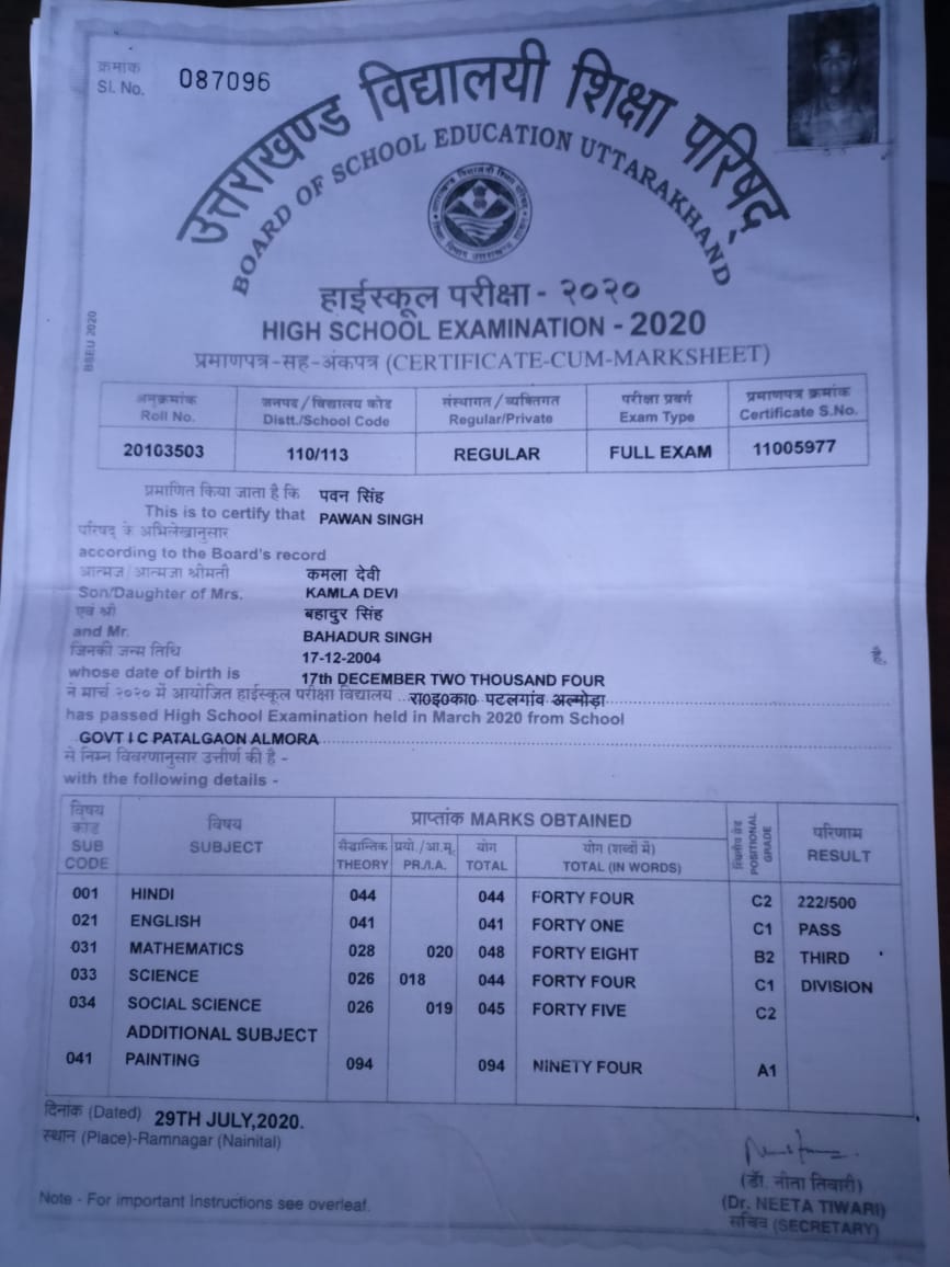| Exam | Full Marks | Pass Marks | Marks Obtained |