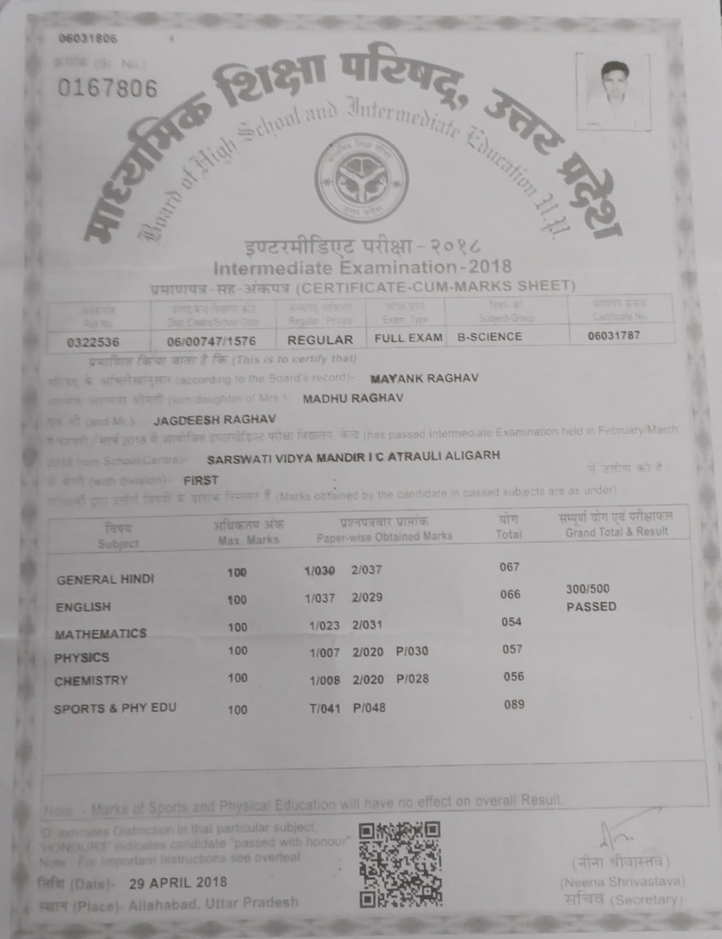 | Exam | Full Marks | Pass Marks | Marks Obtained |