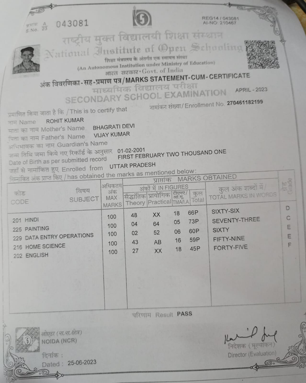 | Exam | Full Marks | Pass Marks | Marks Obtained |