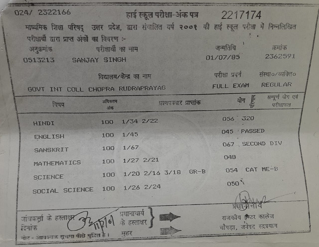 | Exam | Full Marks | Pass Marks | Marks Obtained |