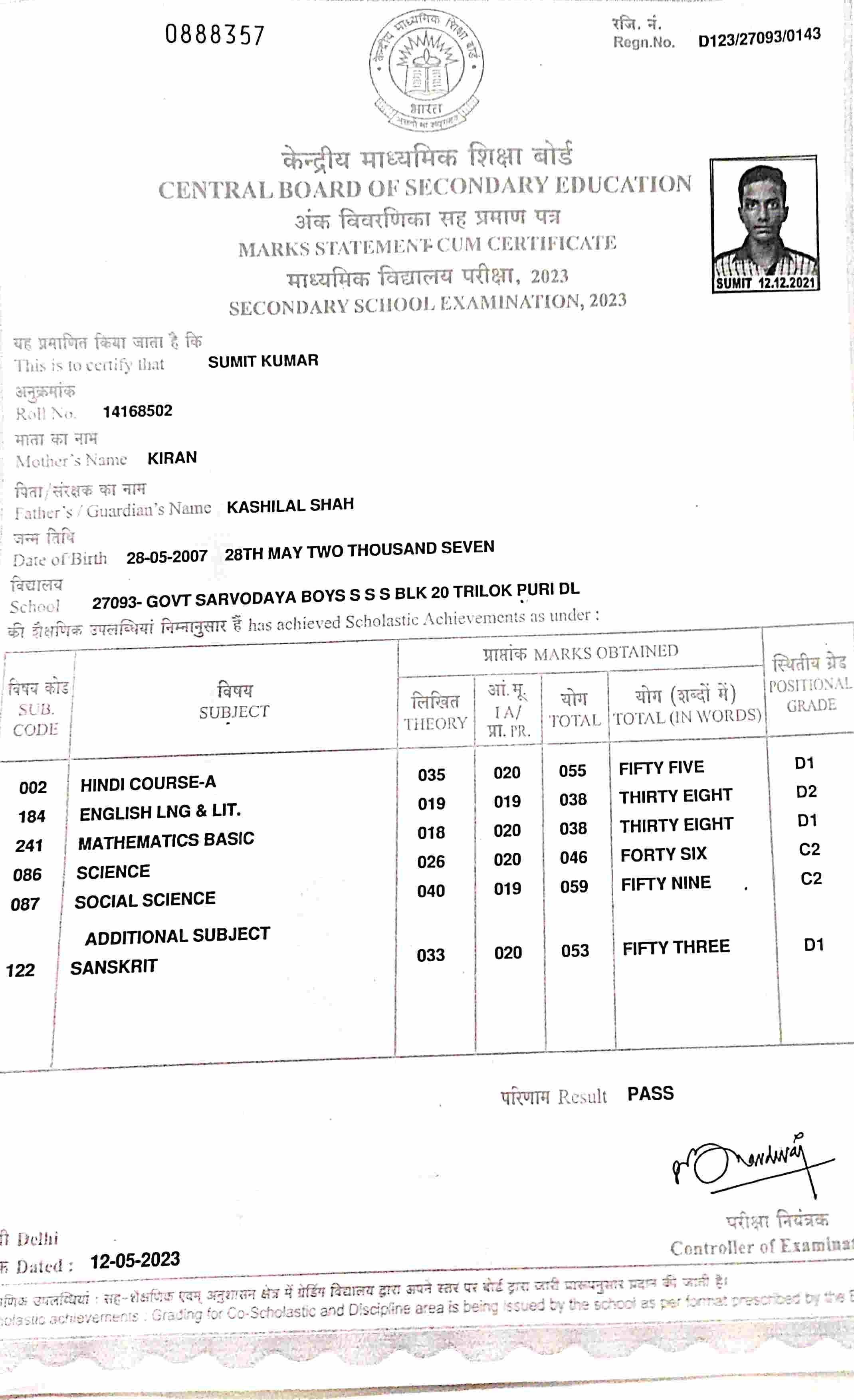| Exam | Full Marks | Pass Marks | Marks Obtained |