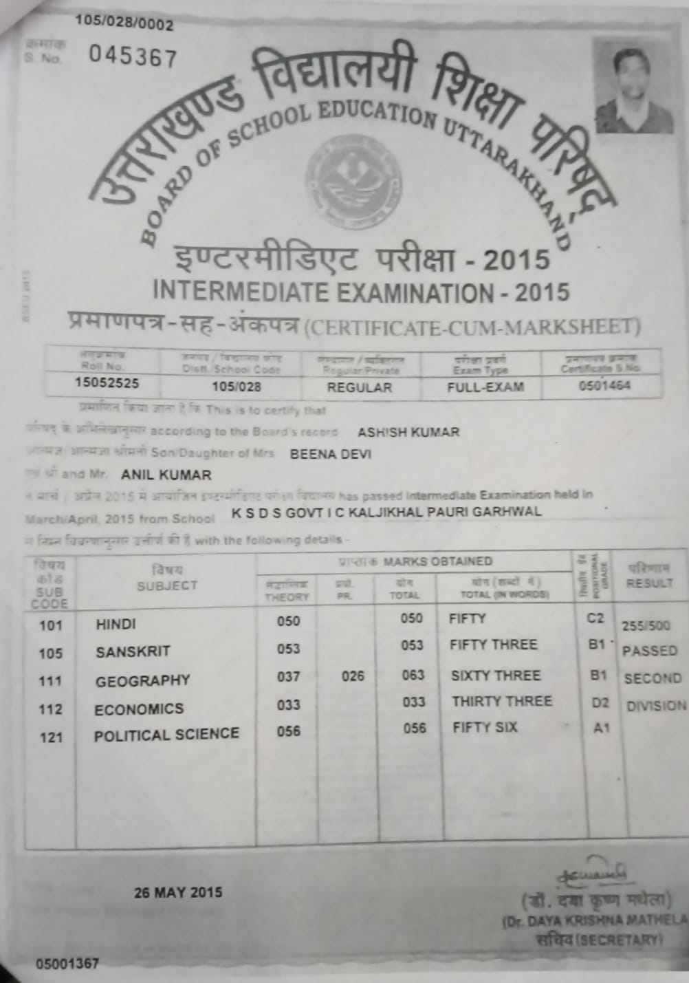 | Exam | Full Marks | Pass Marks | Marks Obtained |