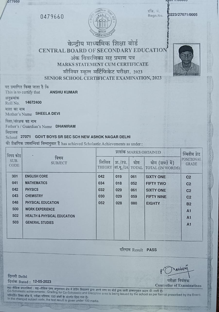 | Exam | Full Marks | Pass Marks | Marks Obtained |