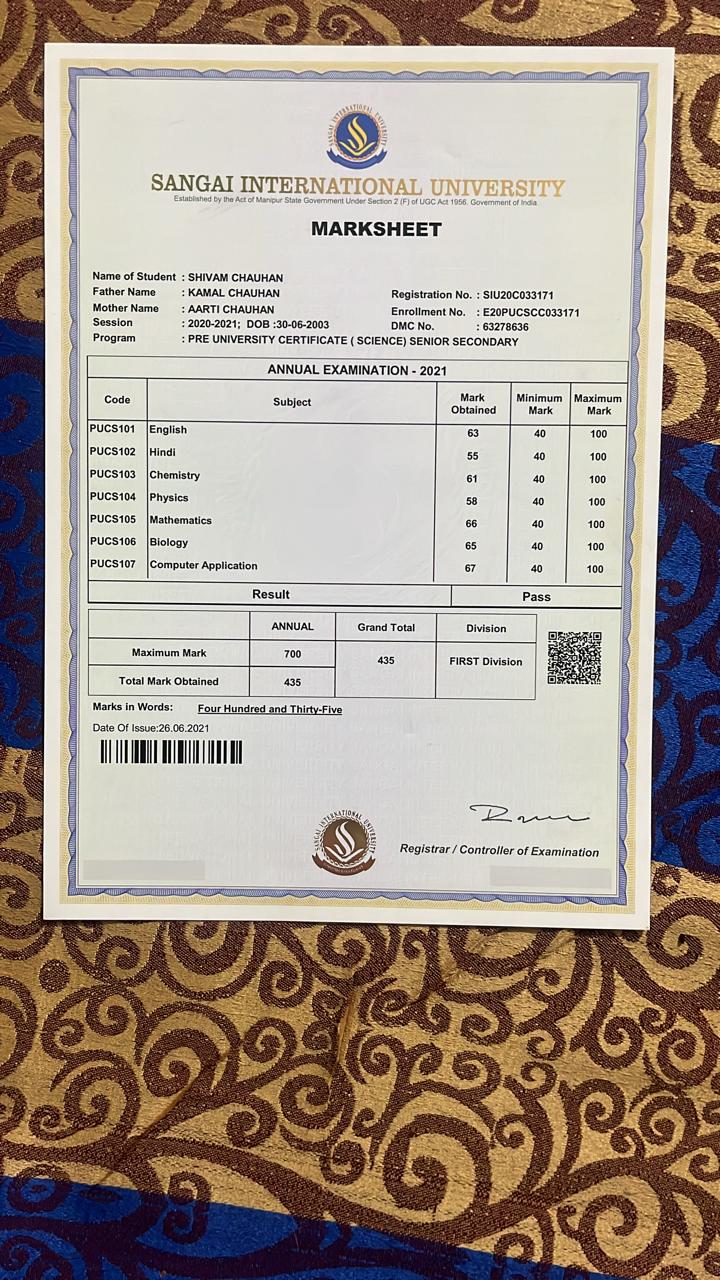 | Exam | Full Marks | Pass Marks | Marks Obtained |