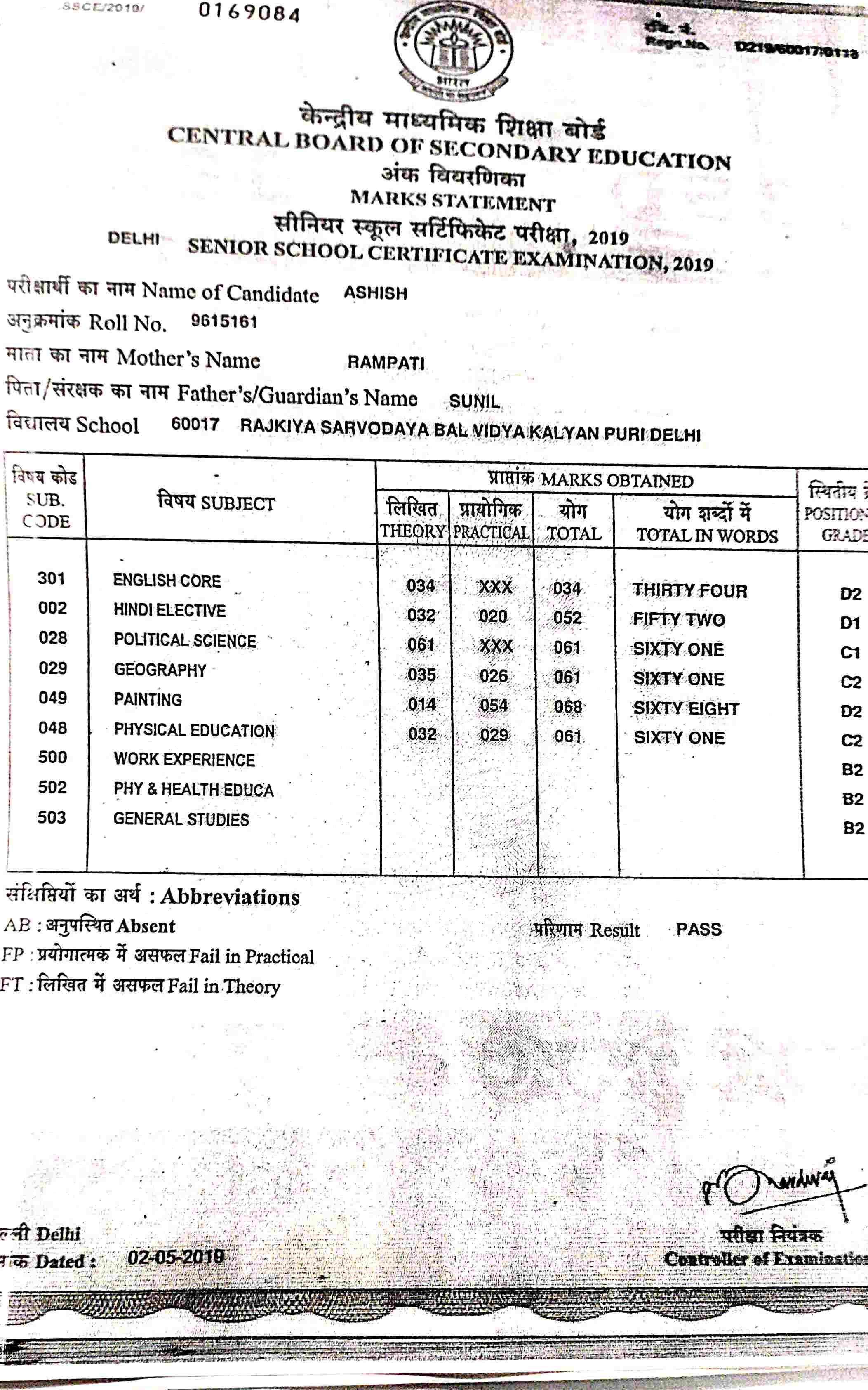| Exam | Full Marks | Pass Marks | Marks Obtained |