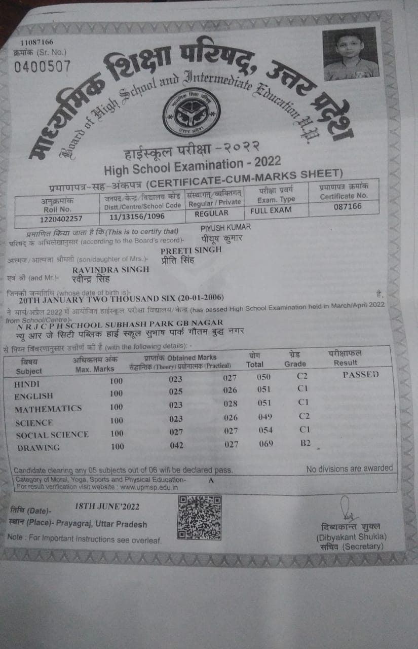 | Exam | Full Marks | Pass Marks | Marks Obtained |