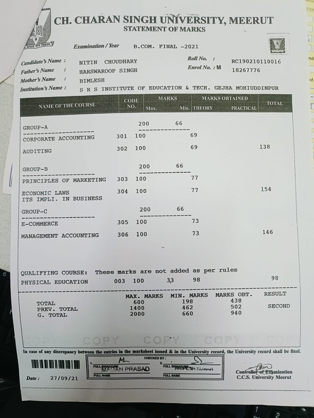 | Exam | Full Marks | Pass Marks | Marks Obtained |