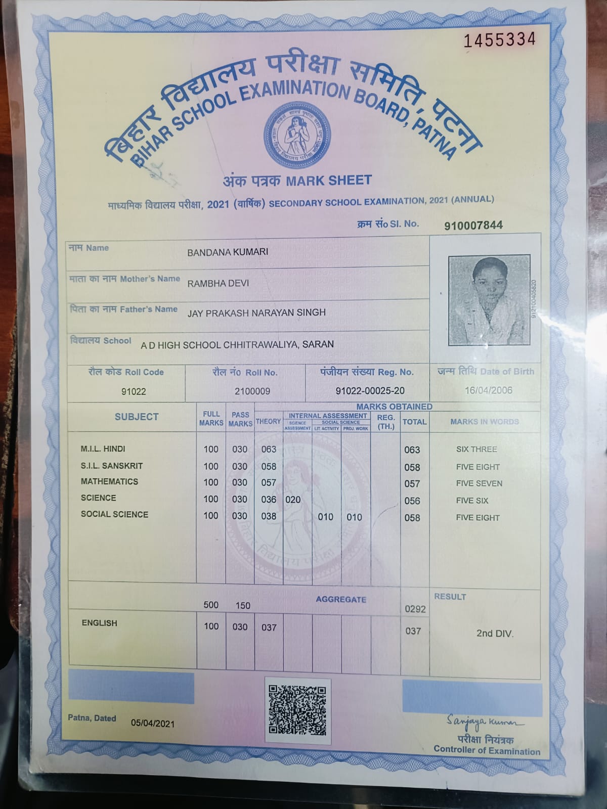 | Exam | Full Marks | Pass Marks | Marks Obtained |