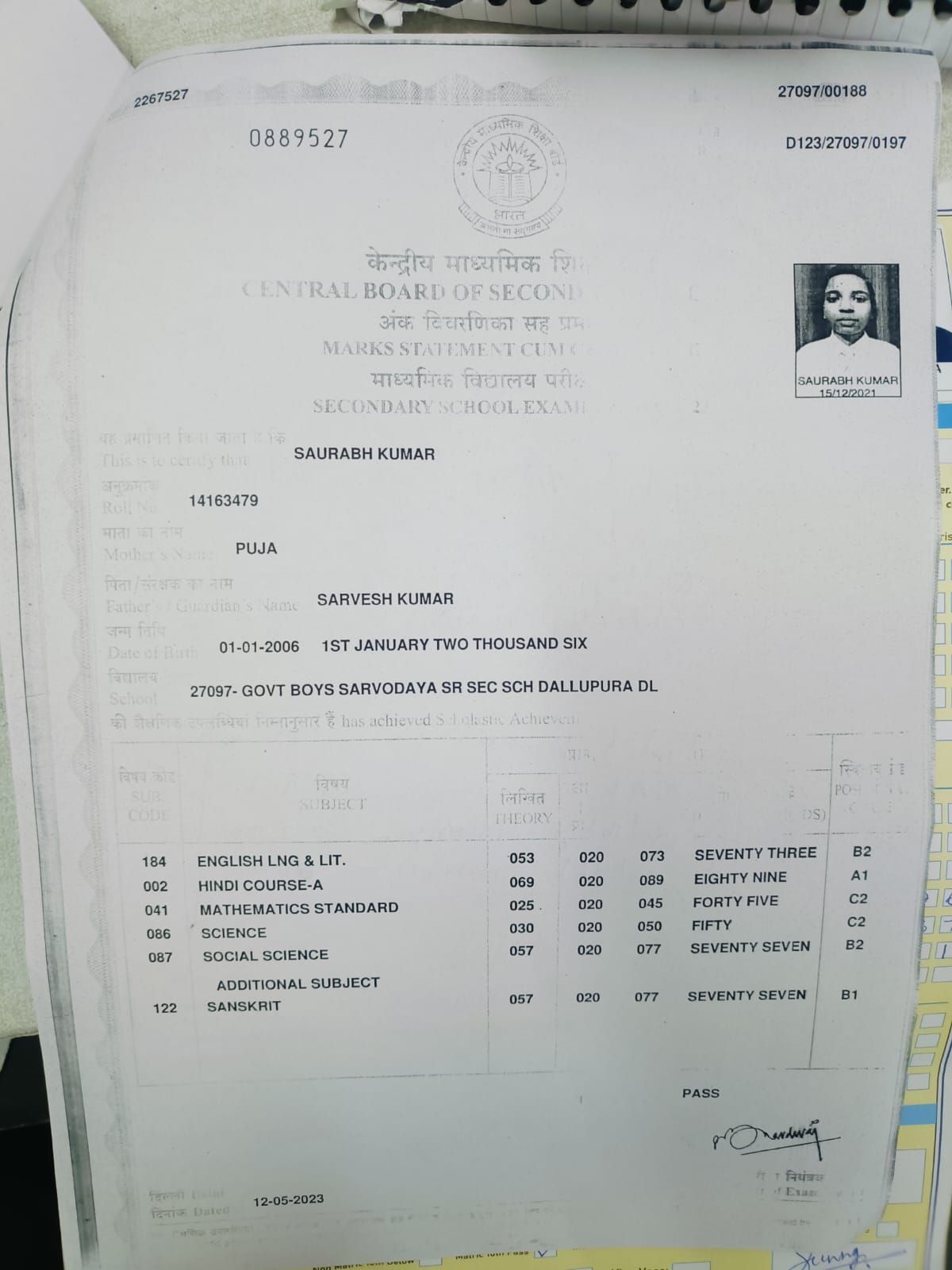 | Exam | Full Marks | Pass Marks | Marks Obtained |