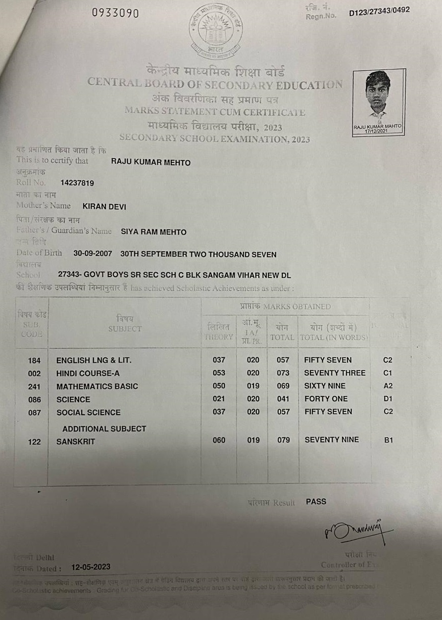 | Exam | Full Marks | Pass Marks | Marks Obtained |