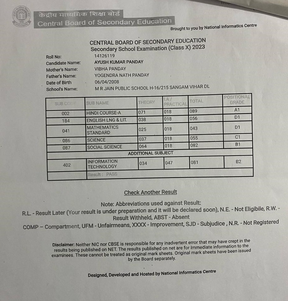 | Exam | Full Marks | Pass Marks | Marks Obtained |