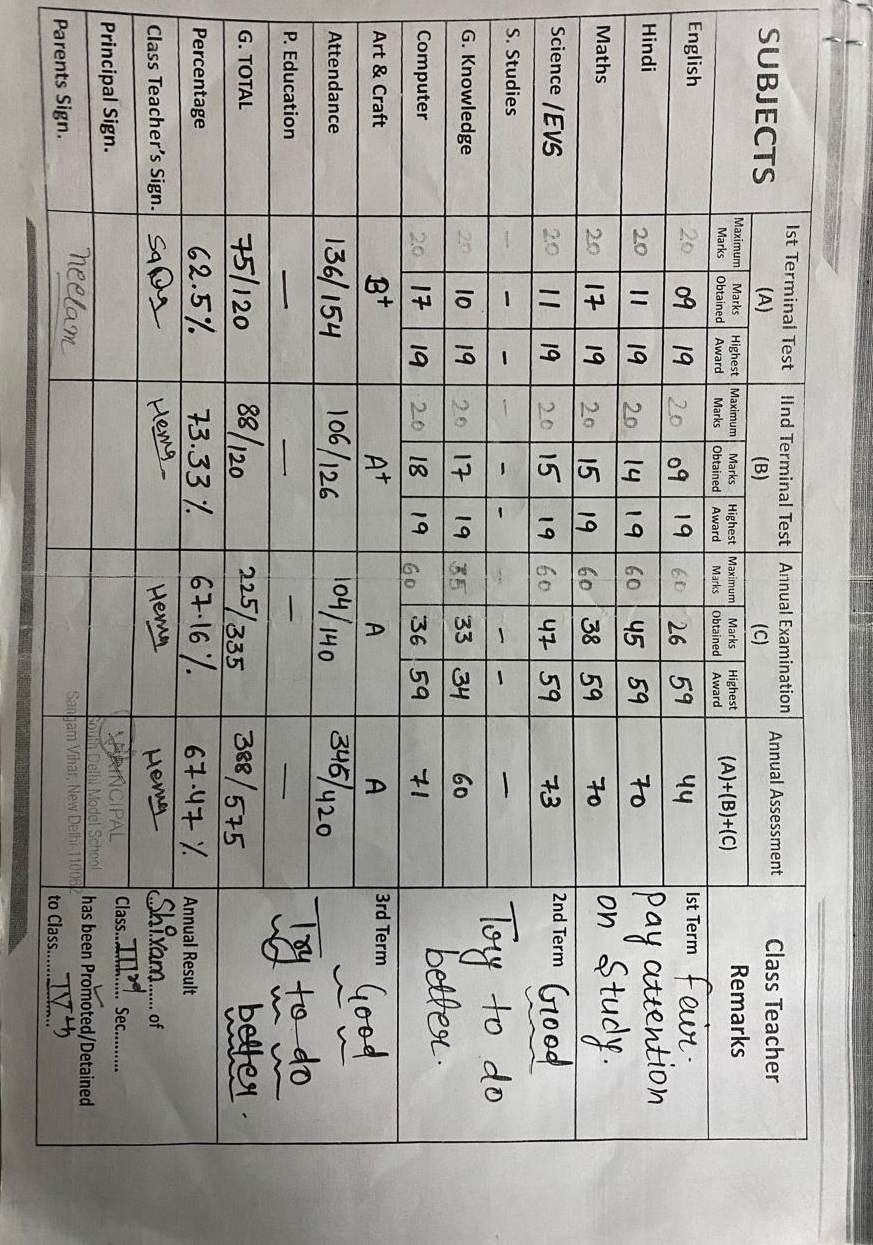 | Exam | Full Marks | Pass Marks | Marks Obtained |