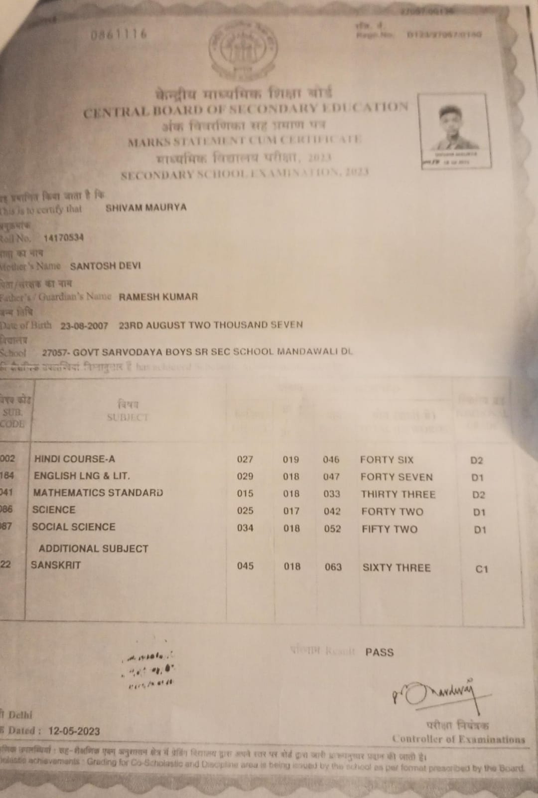 | Exam | Full Marks | Pass Marks | Marks Obtained |