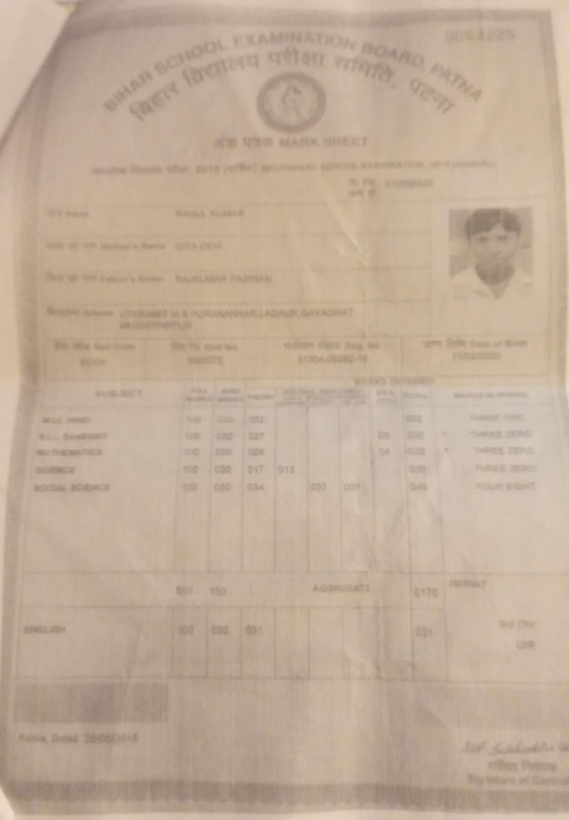 | Exam | Full Marks | Pass Marks | Marks Obtained |